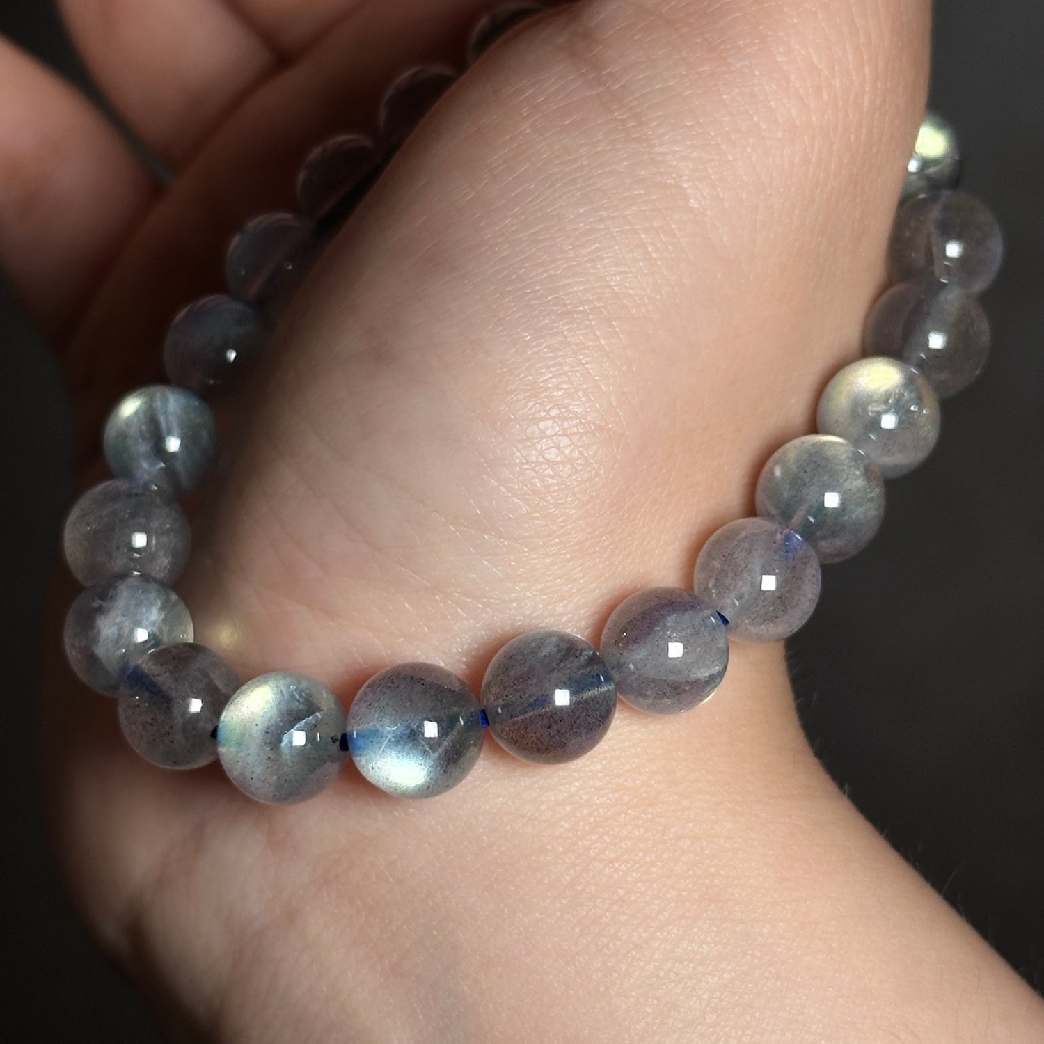 The bead size of this bracelet is 8.8mm, and hand circumference is 16cm.