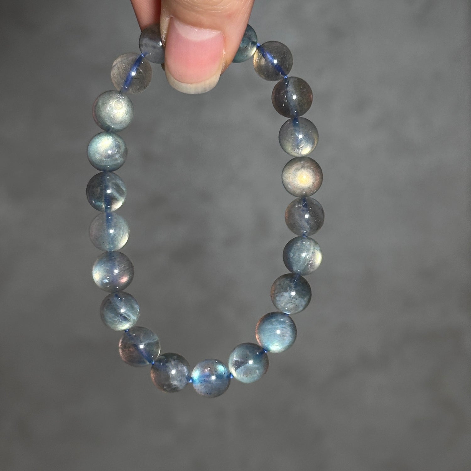 Gray Moonstone is a type of labradorite. The name of labradorite comes from its discovery place: Labrador, Canada. Gray Moonstone is a feldspar mineral with a unique "moonlight effect". Because it gathers a variety of elemental crystal minerals inside, the overlapping layers will produce a soft and charming blue halo under the light, as if the moonlight is falling. This mysterious and romantic light has been loved by people since ancient times.