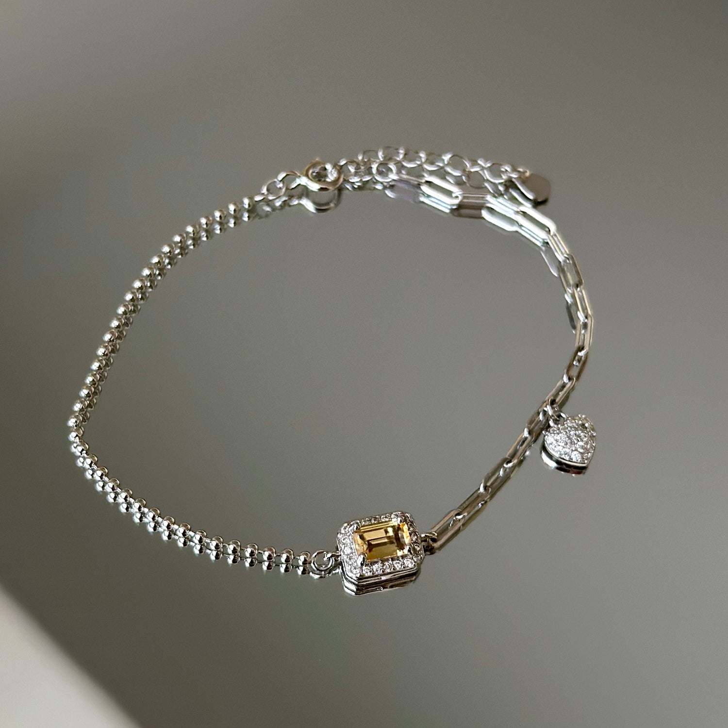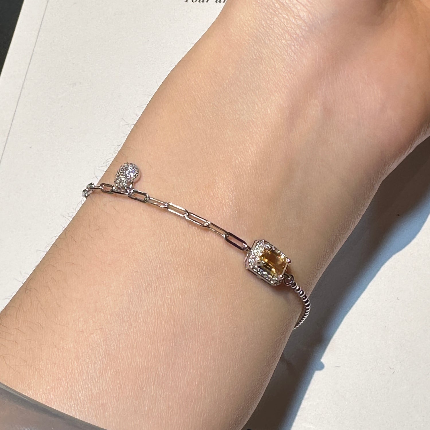 Indulge in the enduring power of hope and joy with our Natural Citrine Silver Bracelet. Handcrafted from sterling silver, it showcases a vibrant citrine stone symbolizing optimism and positive energy. Surrounded by a halo of white zircon, this exquisite bracelet adds a touch of sparkle and elegance to any outfit.