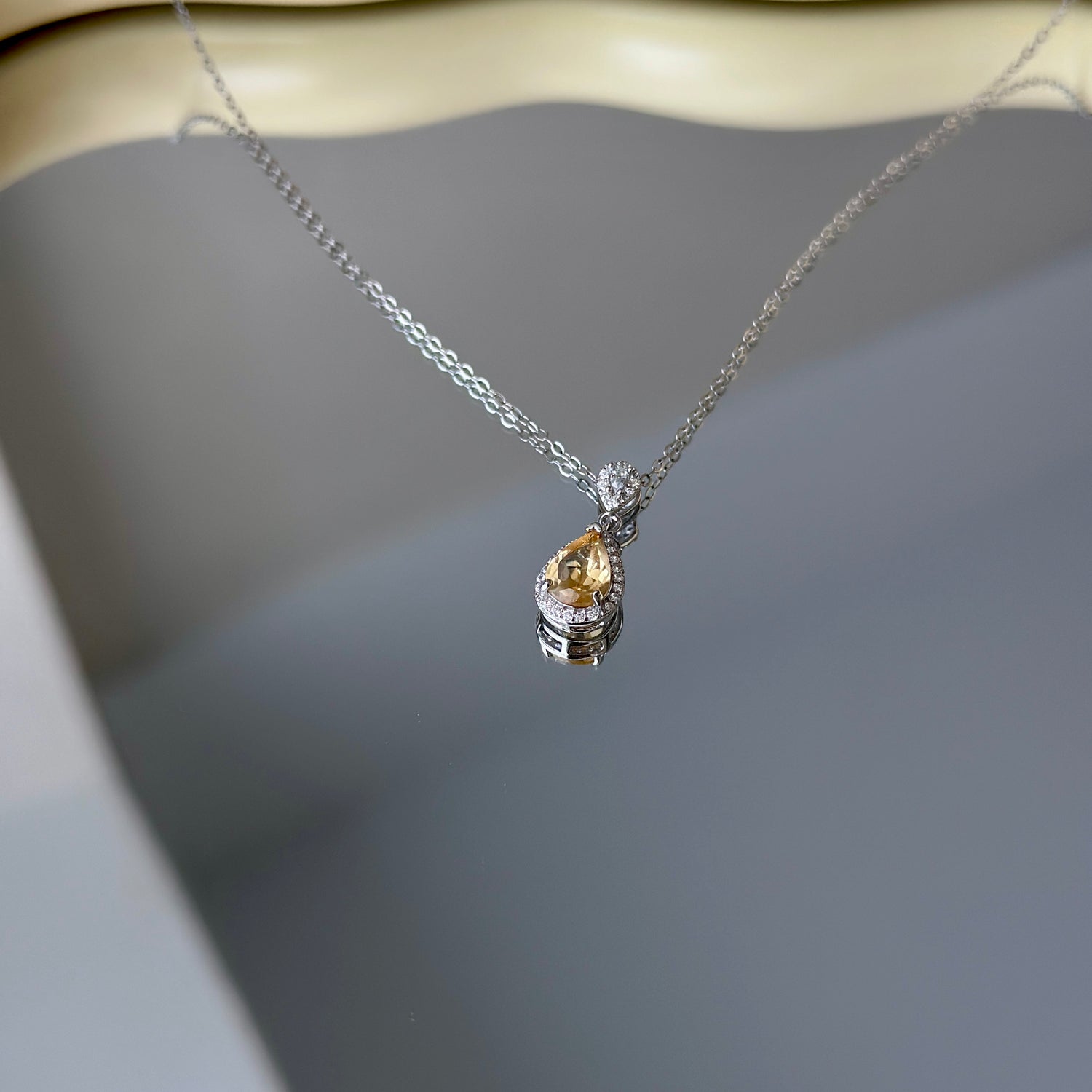 Embark on a journey of hope and optimism with our exquisite Citrine Pendant Necklace. Crafted from sterling silver, this necklace features a teardrop-shaped citrine stone, a symbol of warmth, abundance, and prosperity. The citrine's radiant yellow hue is reminiscent of the sun's golden rays, bringing a touch of sunshine to your everyday life.