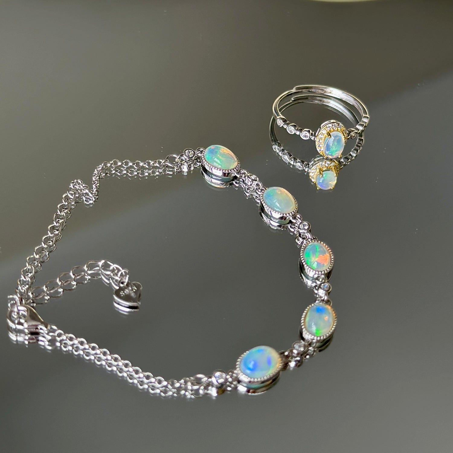 Known for its unique iridescent effect, this gemstone reflects a rainbow of colors, making it truly magical. Adorn your finger and hand with this jewellery set and watch as it sparkles and shimmers with every movement. Our meticulously designed opal jewelry sets are more affordable than individual pieces while complementing each other to showcase the gemstone's brilliance. Whether you're treating yourself or gifting someone special, our opal sets are the perfect choice.