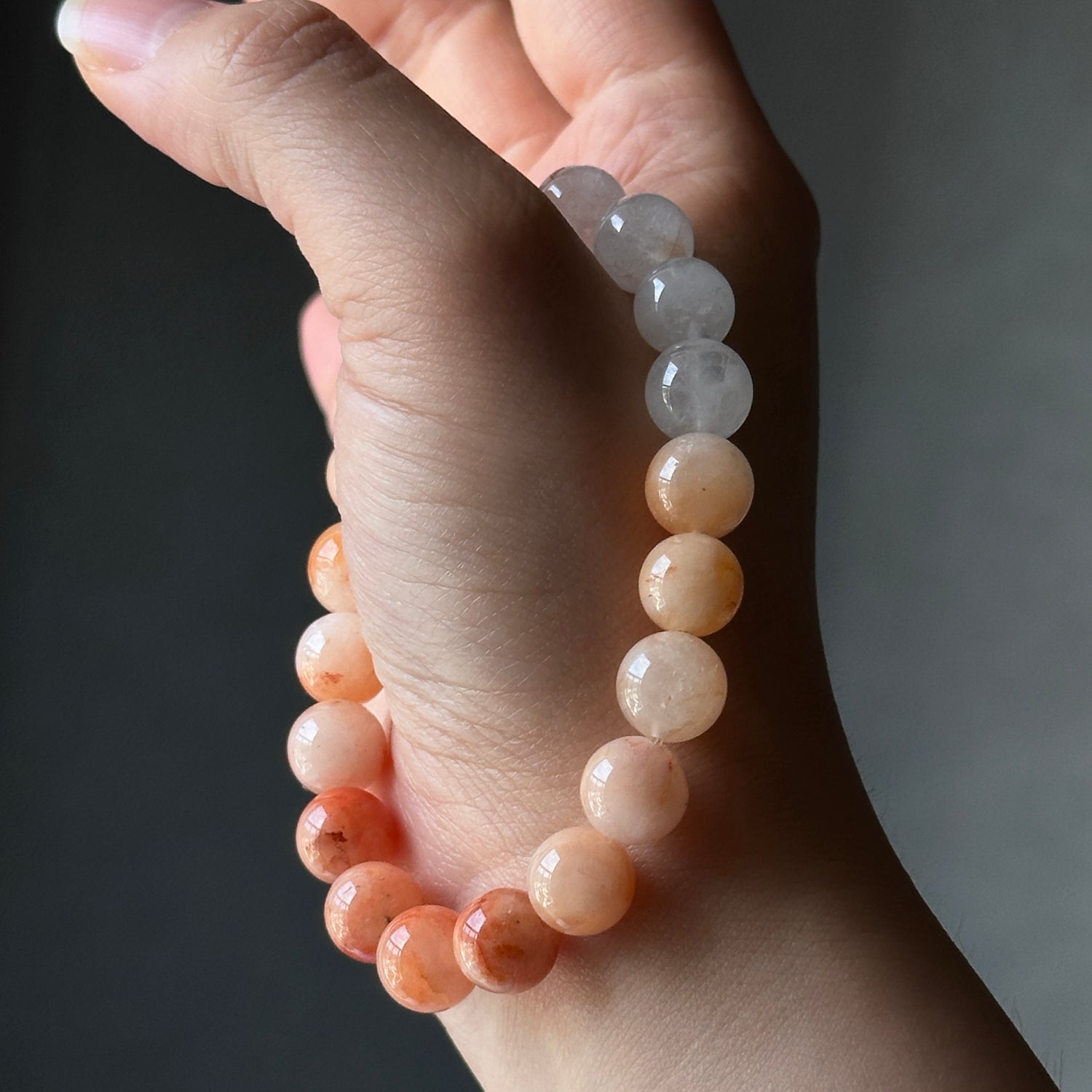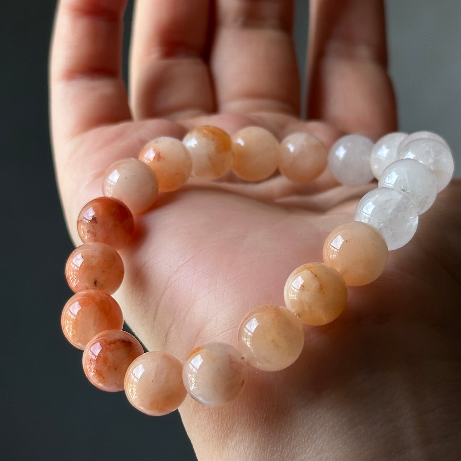The gradient rabbit fur crystal is deeply loved by crystal lovers for its unique visual effects and powerful energy. Its color transition is natural, as colorful as a rainbow, giving people a dreamy feeling. The color of this bracelet gradually deepens from white to a bright red. Like the morning glow, it turns from white to red and dyes the sky red.