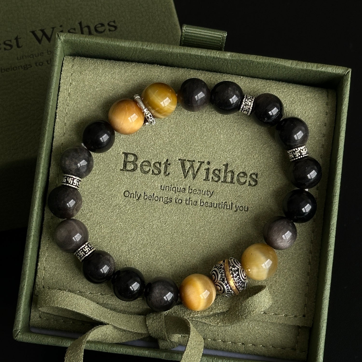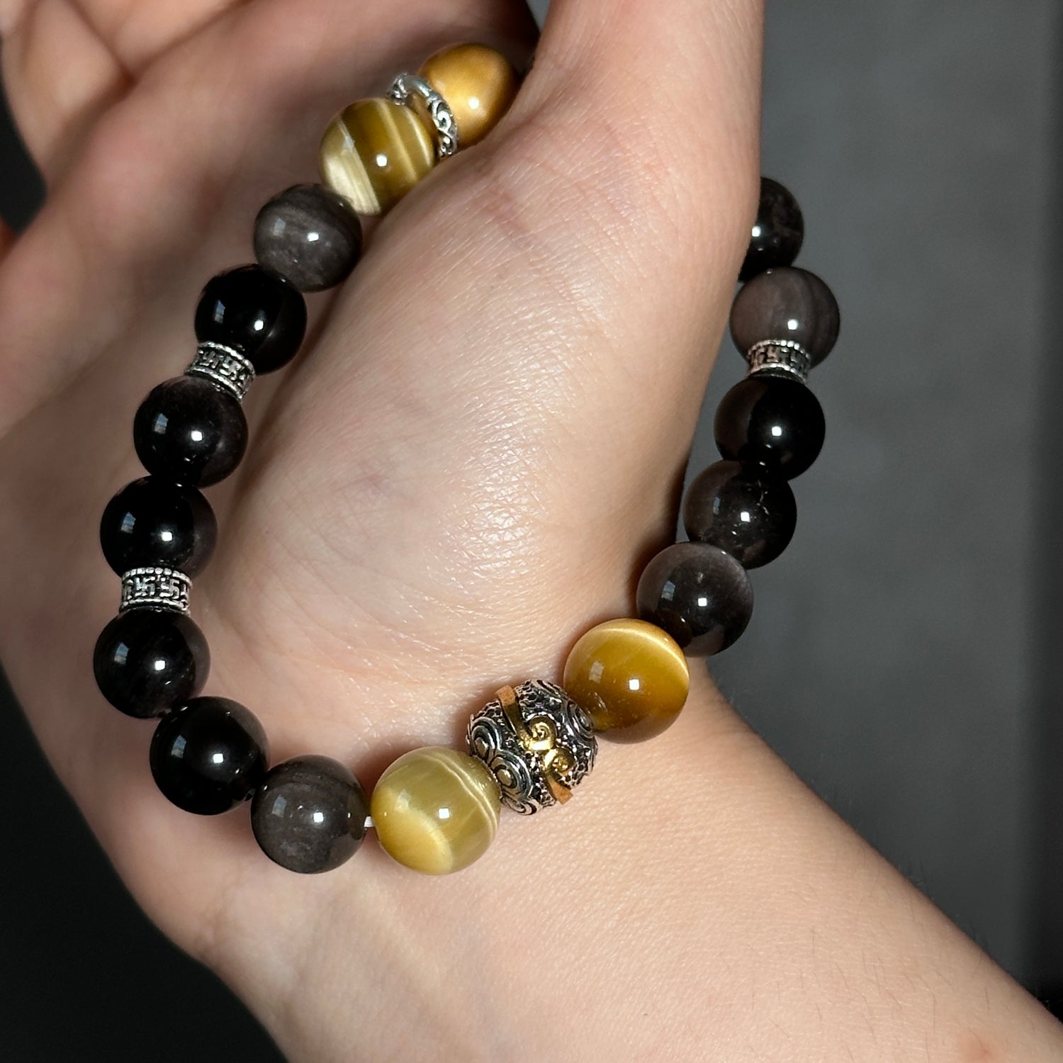 【Handmade】Silver Obsidian Bracelet [Tiger Eyes]: Energy Guardian of the Mysterious Night Sky