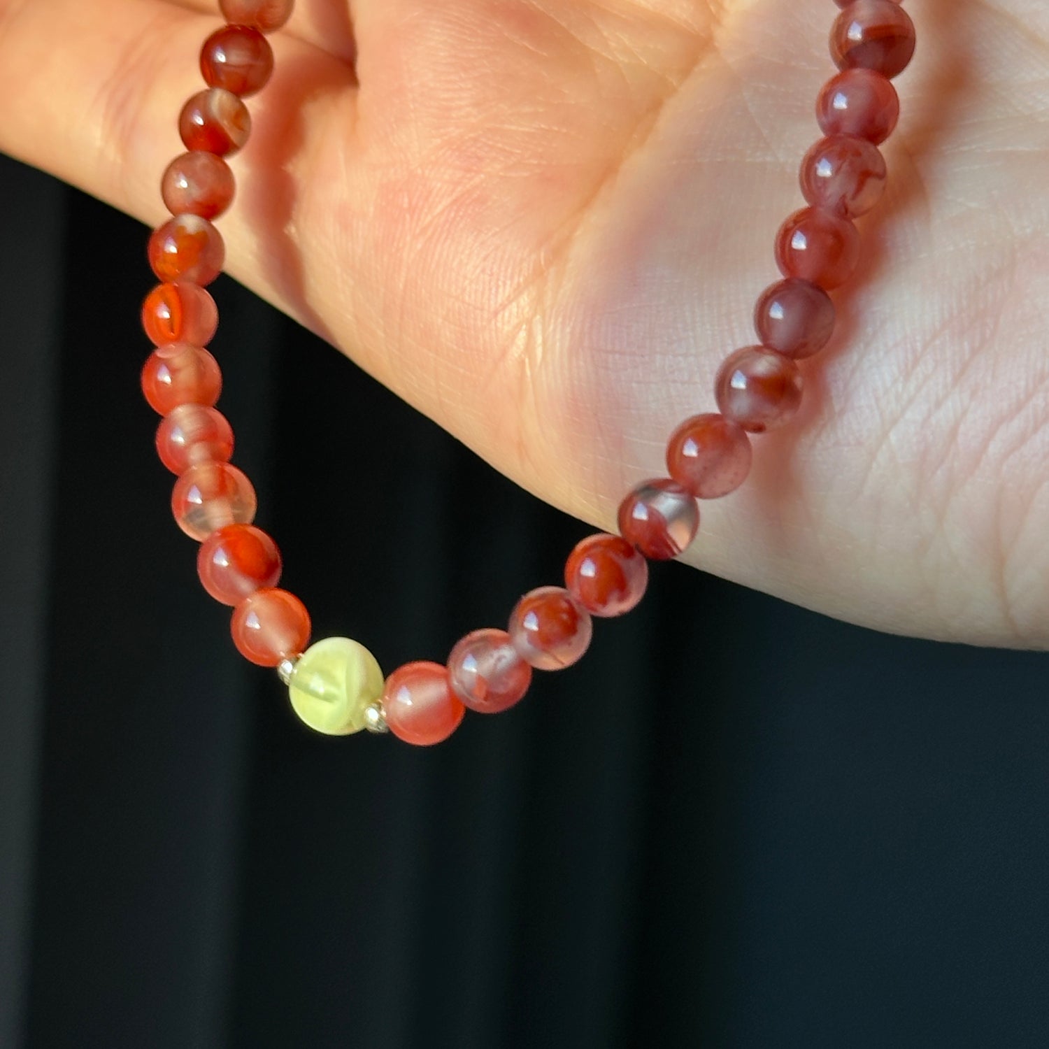 South Red Agate and amber, known for their protective and prosperity-enhancing properties, provide comprehensive protection and good fortune.