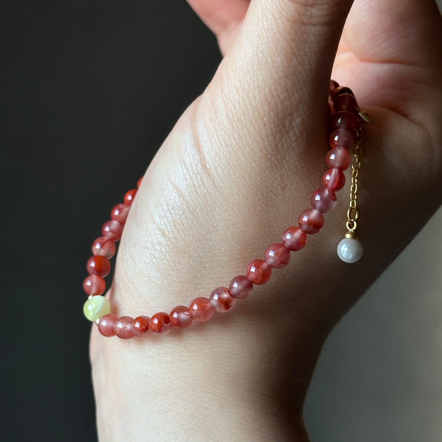 South Red Agate Bracelet: Mermaid Tail With Beeswak