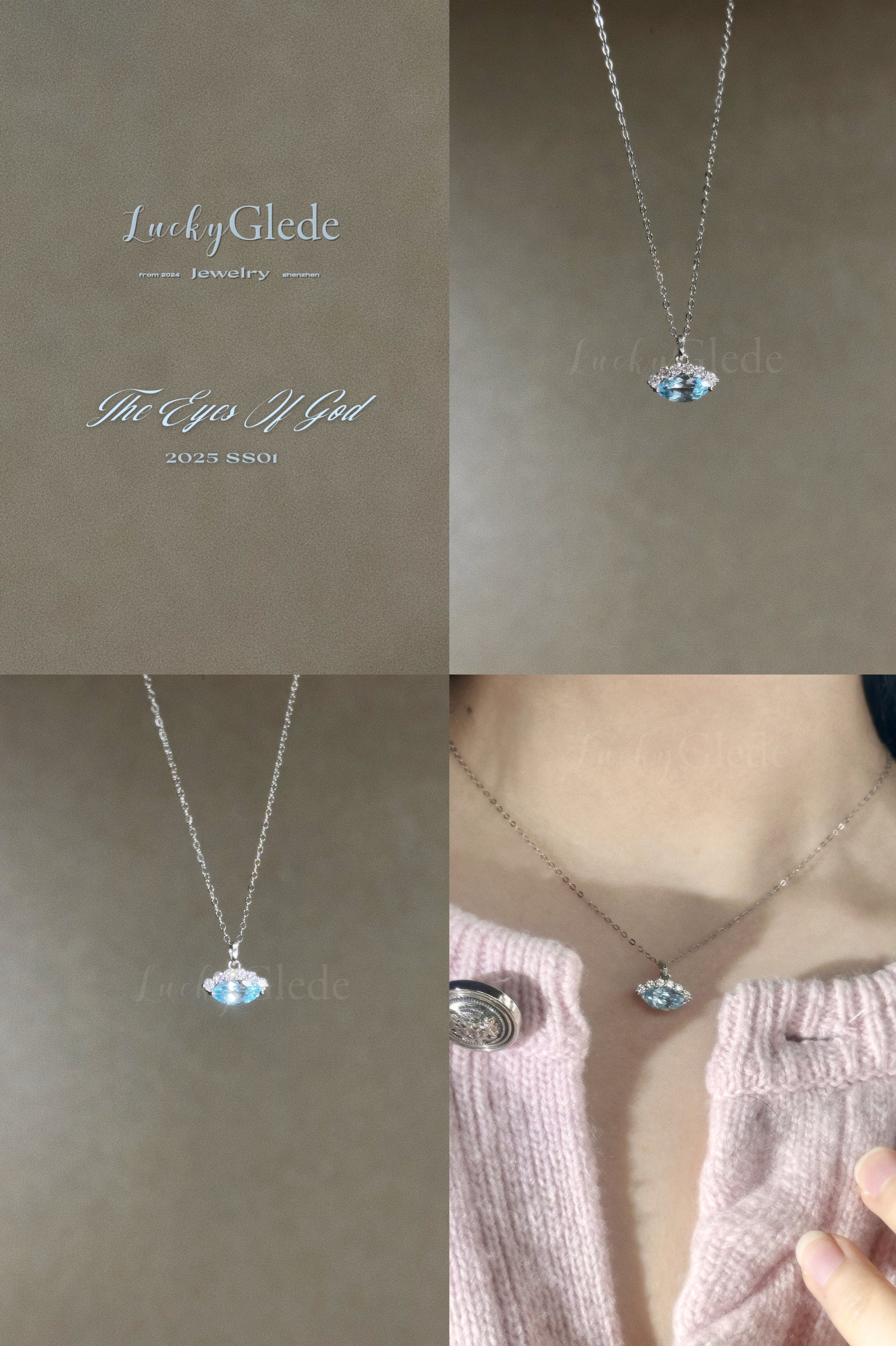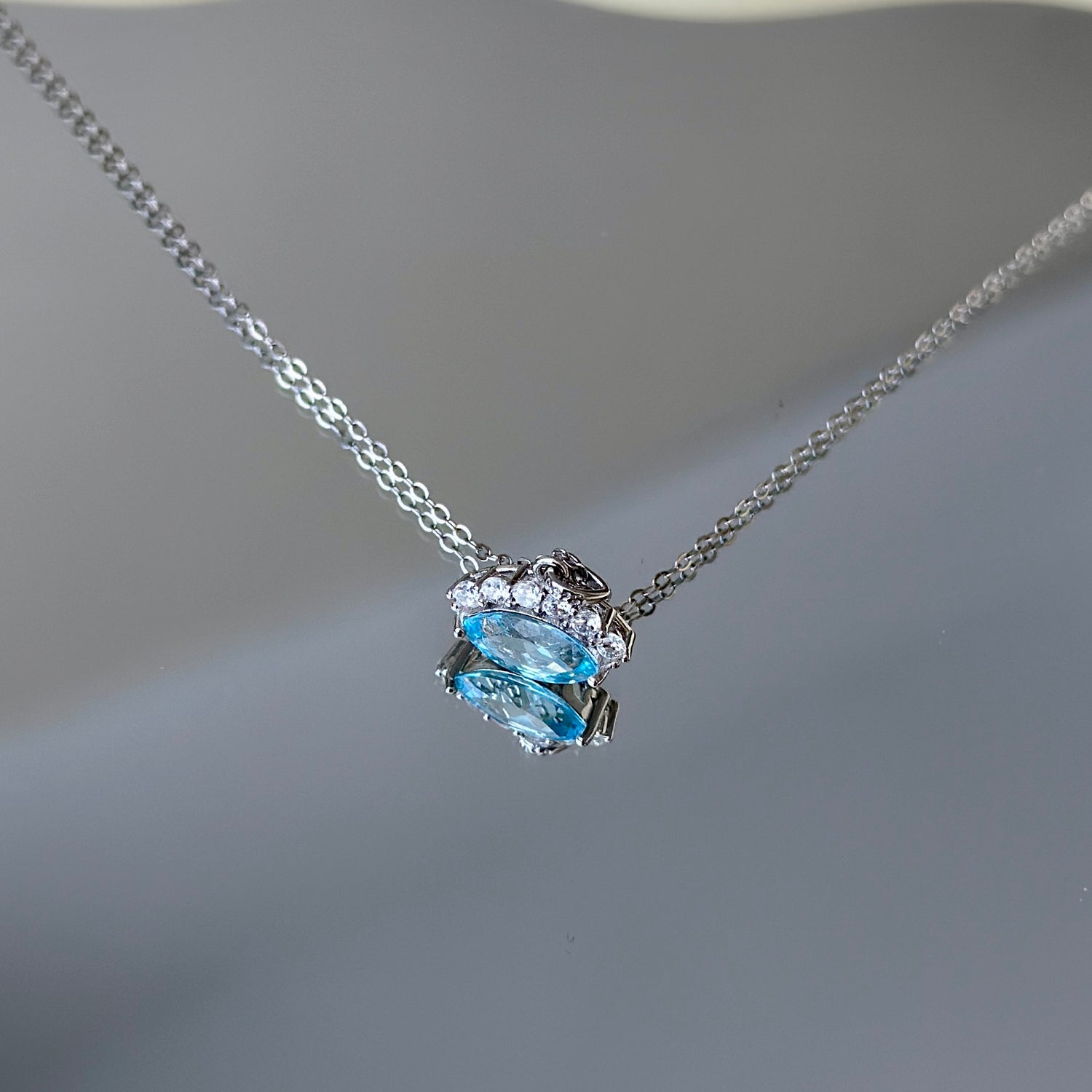 The Eye of Ocean: Natural Blue Topaz Silver Necklace