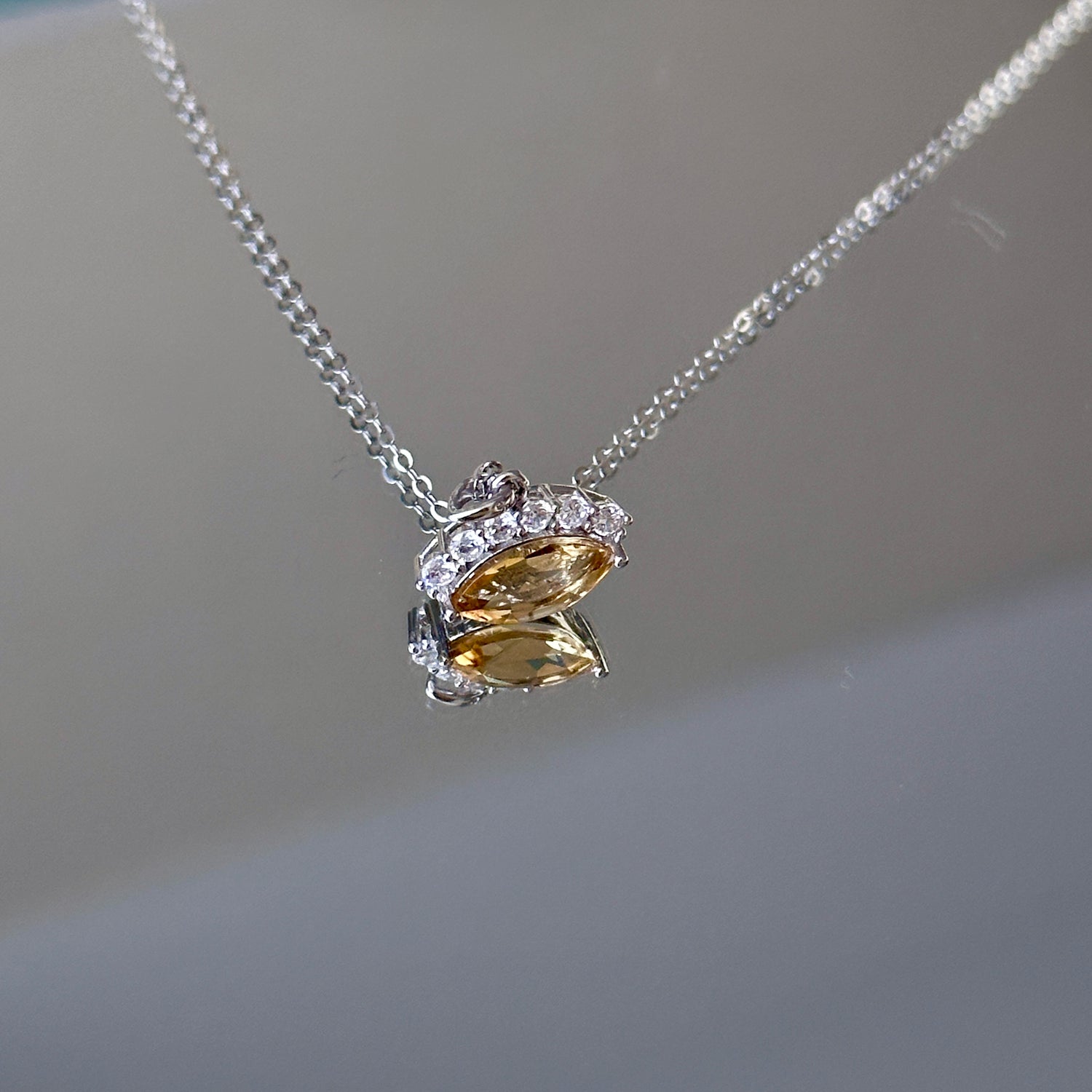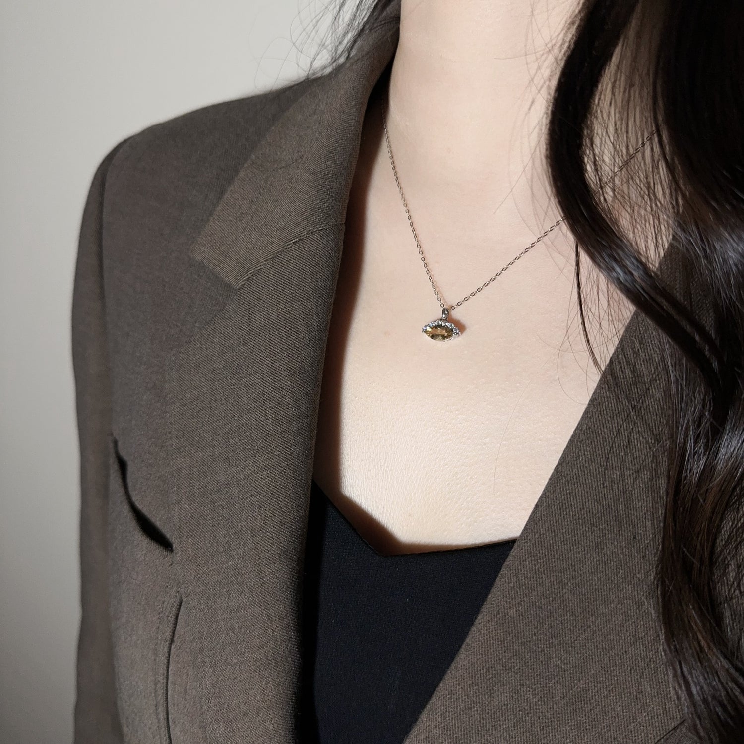 This silver necklace, designed in the shape of a knowing eye, features a dazzling citrine at its center. The golden gemstone, a symbol of wealth and abundance, radiates warmth and positivity. Citrine is believed to attract prosperity and opportunities. The eye, often seen as a window to the soul, symbolizes wisdom, insight, and the ability to see beyond the surface. By wearing this necklace, you're gifting yourself with a discerning eye to navigate the world and seize opportunities.